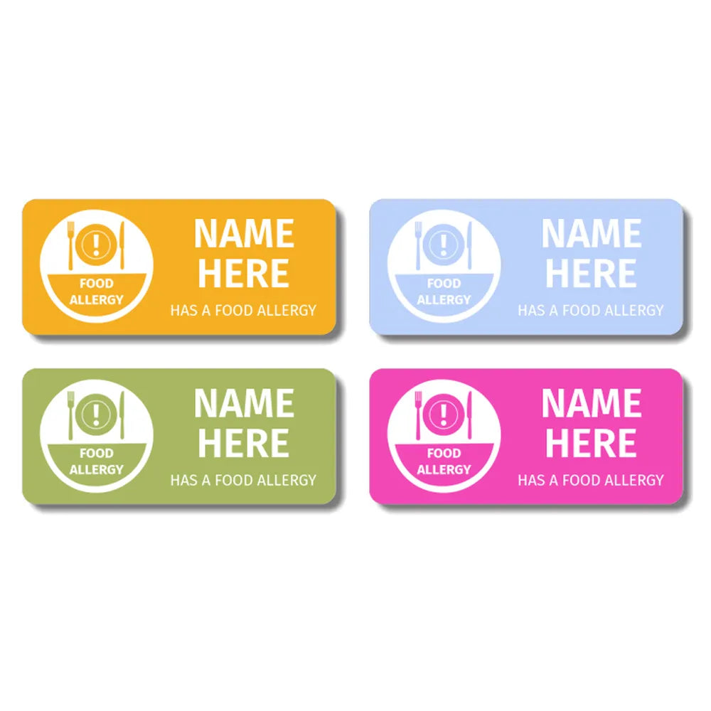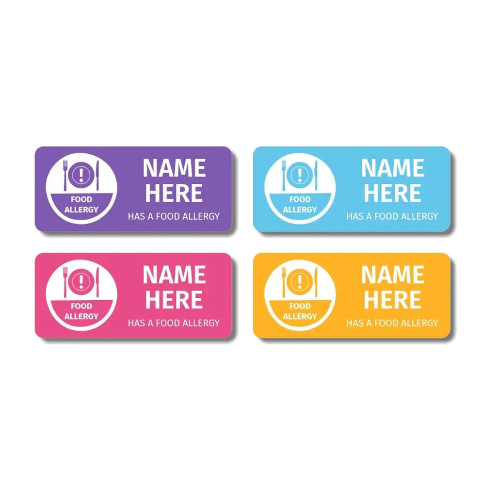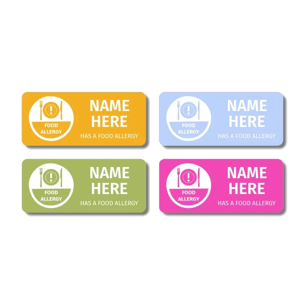 Keep your child safe with personalised allergy name labels — bright, clear, and easy to spot on lunch boxes, drink bottles, and more!