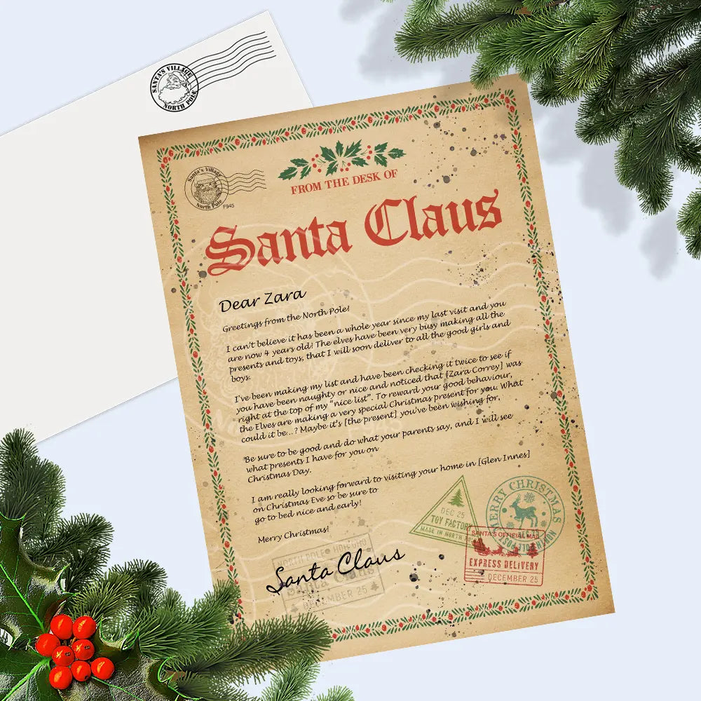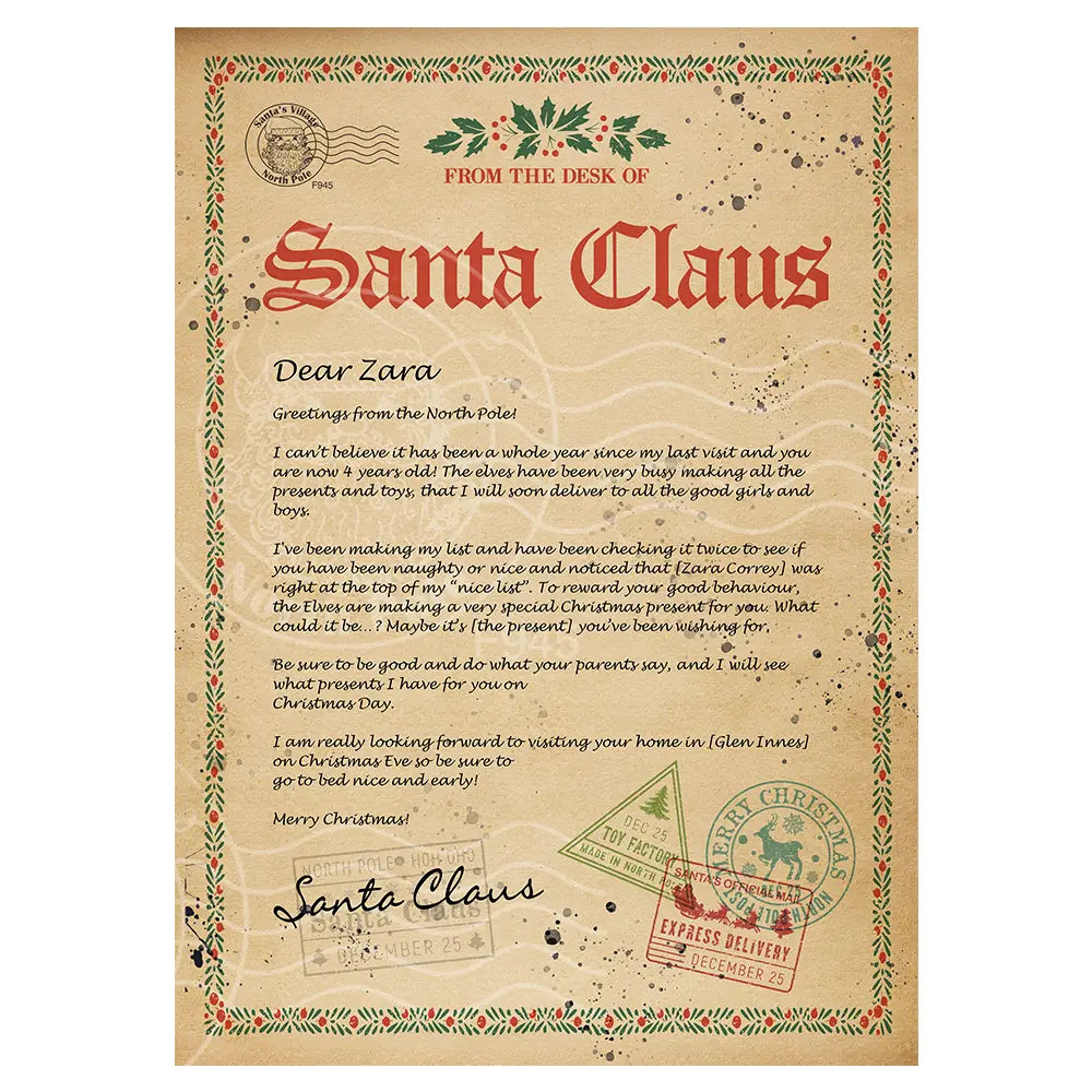 Watch your child's excitement when they receive a personalised letter from Santa Claus. Spread a little magic to your child or grandchild this Christmas.